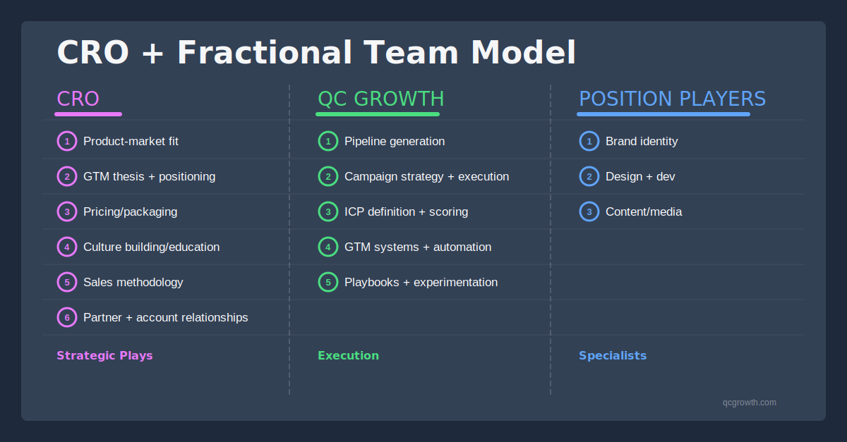 To succeed, founders must treat their CRO like they treat their CTO: with resources, support, and fractional specialists who can accelerate execution. When properly enabled, a founding CRO can turn deep technical innovation into scalable growth.